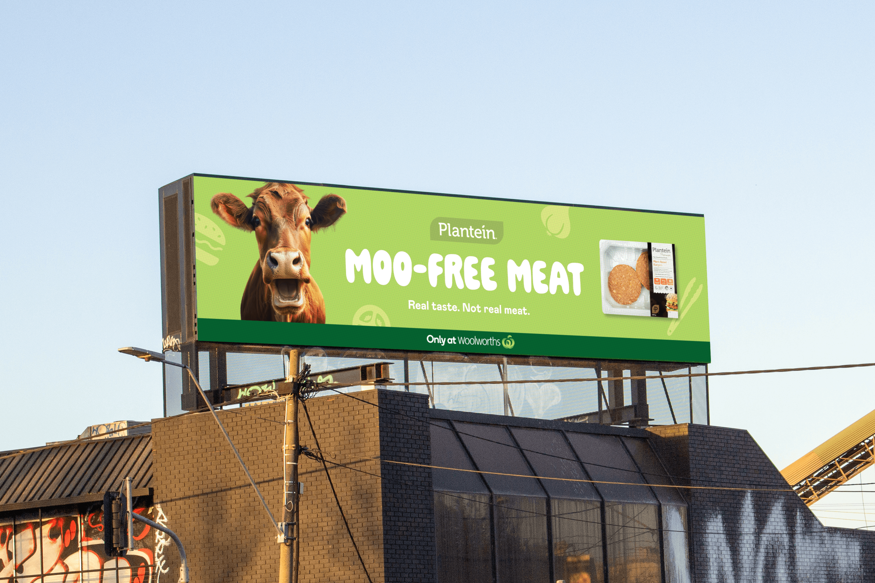 Plantein wanted to run OOH campaign across Melbourne and Sydney for their range of alternative meat products. For this I came up with the platform ‘Real taste. Not real meat’ based on their strongest product truth; the taste. This campaign ran for 9 weeks across 11 different locations in Melbourne and Sydney. The campaign resulted in a 35% uplift in in-store purchases at Woolies.